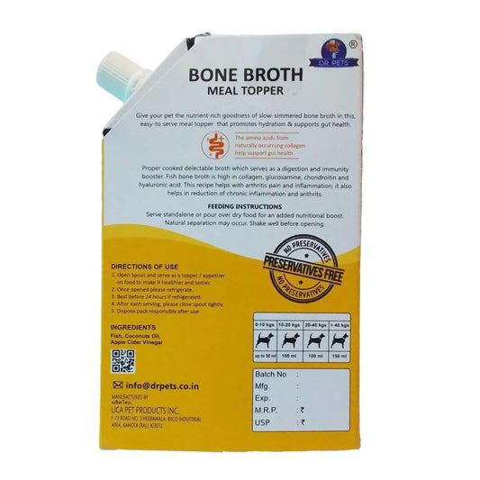 Dr.Pets Fish Bone Broth for Cats & Dogs (100ml X 4 Pack) Food Topper, Human Grade Preservative Free, Cat/Dog Wet Food Soup for All Life Stages, Natural Supplements with Natural Collagen.