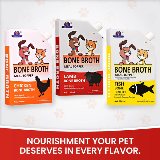 Dr.Pets Lamb Bone Broth for Cats & Dogs (100ml X 3 Pack) Food Topper, Human Grade Preservative Free, Cat/Dog Wet Food Soup for All Life Stages, Natural Supplements with Natural Collagen