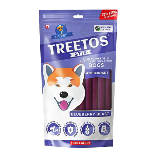 Dr.Pets Treetos Dog Food, Chicken Sticks for Dog Chew Stick for All Life Stages, Dog Treats for Adult Dog & Puppies, Gluten-Free, Soft & Chewy Texture, Blueberry Blast Flavor 85g Pack of 2