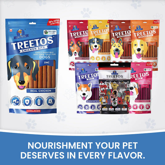Dr.Pets Treetos Dog Food, Chicken Sticks for Dog Chew Stick for All Life Stages, Dog Treats for Adult Dog & Puppies, Gluten-Free, Soft & Chewy Texture, Mix Flavor 70g Pack of 1