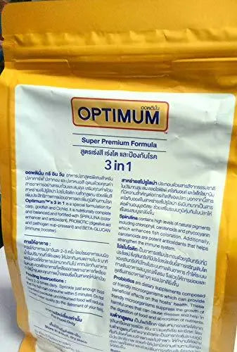 Optimum 3 in 1 Super Premium Formula Fish Food for Carp, Goldfish and Cichlid Spirulina 6% Floating Type Small Pellet (400g) with Free Pop - Up