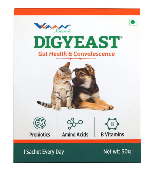 Vvaan Digyeast Gut Health & Convalescence, Anti Stress 100% Pure Natural Supplementary Food 10 Sachet (1 Sachet Everyday) for Dogs & Cats 50g Suppliments Food Pack