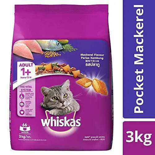 Whiskas Adult Dry Cat Food, Mackerel flavour – 3 kg Pack