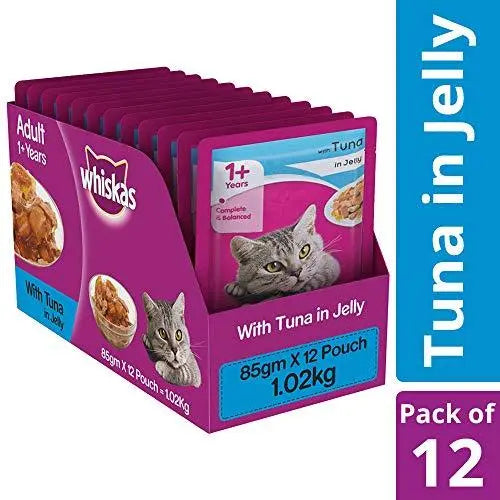 Whiskas Adult Wet Cat Food, Tuna in Jelly – 85 g (1.02 kg, 12 Pouches)