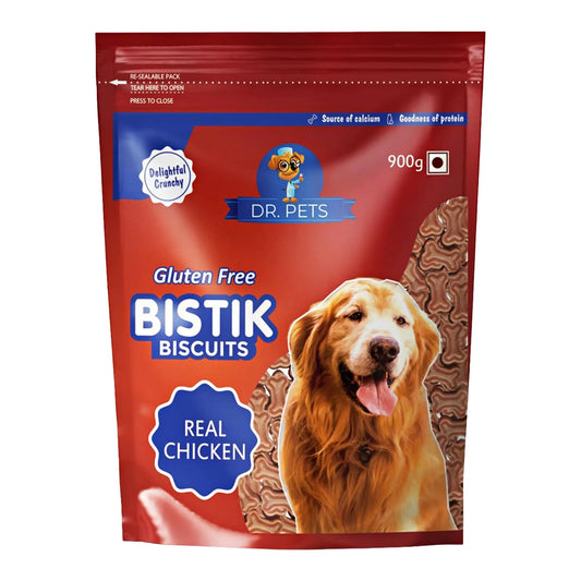 Dr.Pets Bistik Dog Food Treat - Dog Biscuits for Adult Dog & Puppy, Gluten Free Healthy Treats with Fresh & Natural Ingredients, Real Chicken Flavor 900g Pack of 1